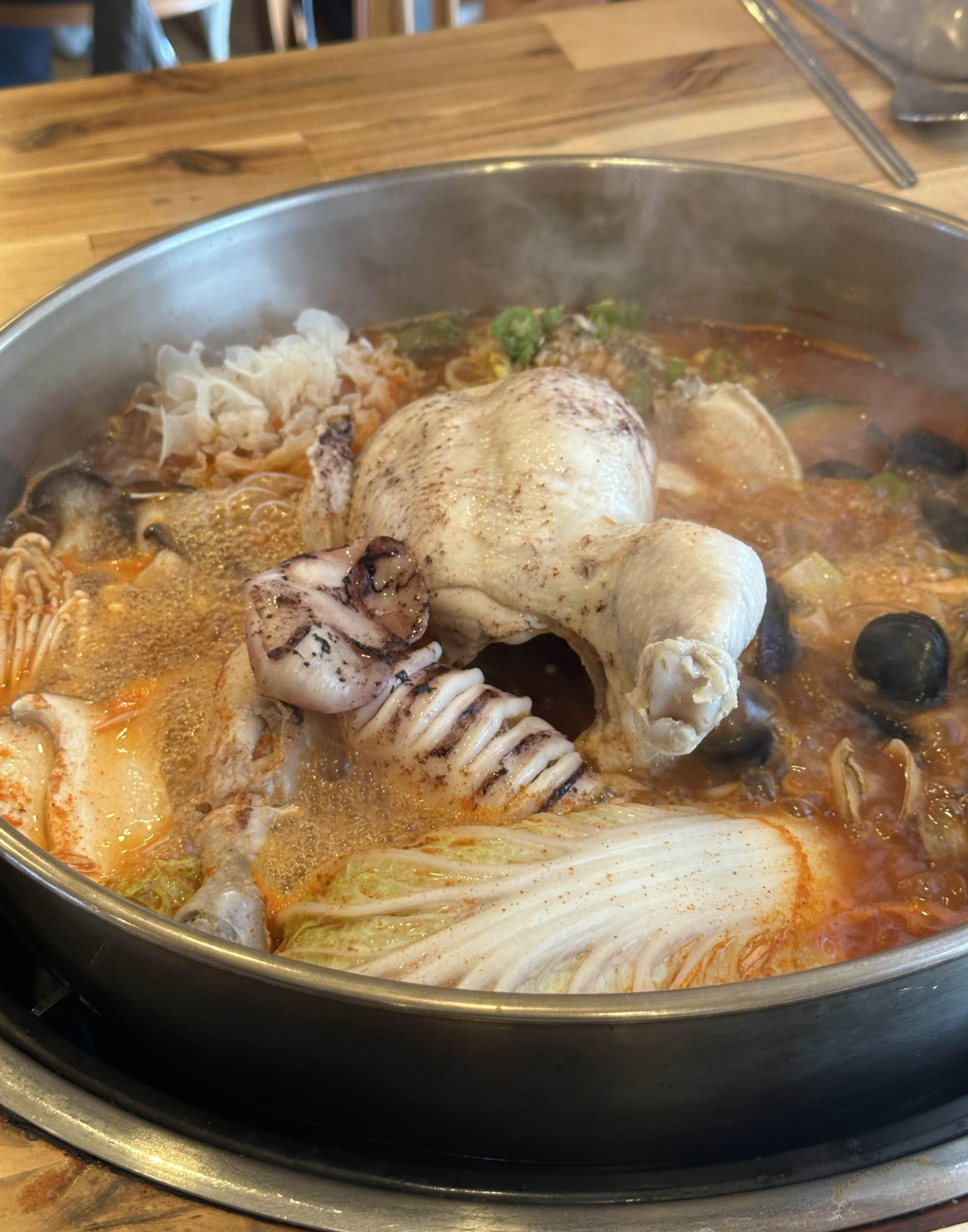 샤브샤브에 닭 한마리를 때려넣은 듯한 메뉴가 점심식사